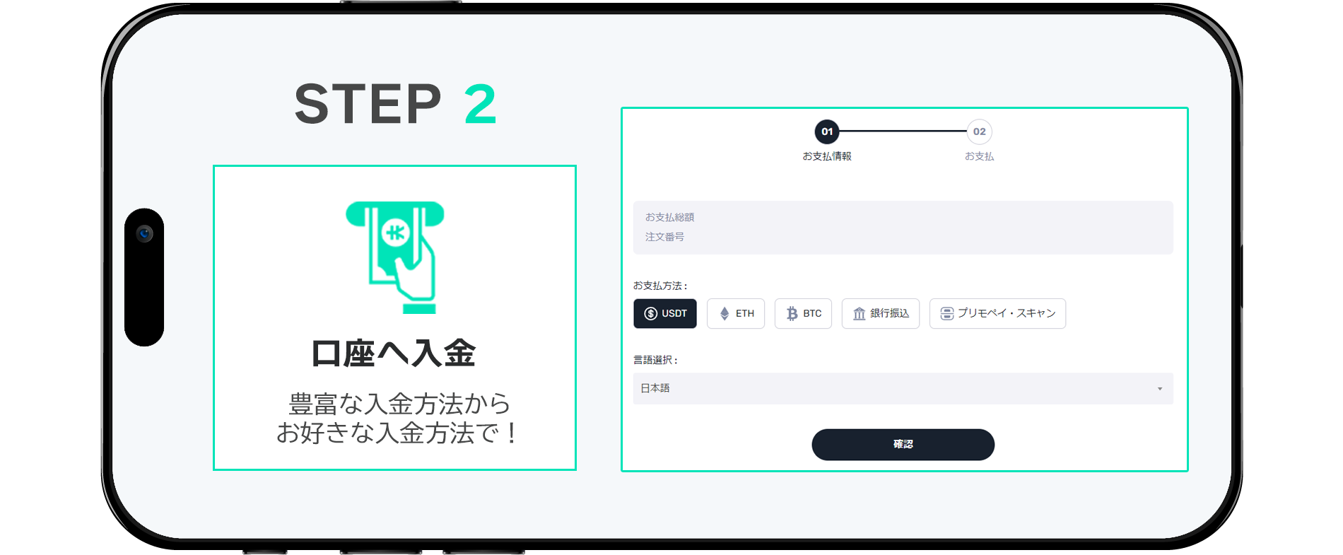 口座開設が完了したら、開設した口座に入金をしていきます。入金方法も豊富に用意されておりガイドに従って入金作業を進めていただくだけなので、どなたでも簡単に入金していただくことが可能です。